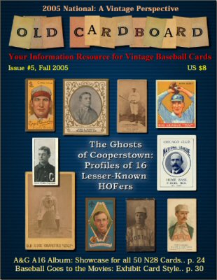 Articles published in this issue are written by some of the hobby's most informed experts and about some of it's most interesting vintage sets. They include: 1) "Sixteen Ghosts of Cooperstown: Profiles of Lesser-Known HOFers" by David Fleitz. SABR researcher Fleitz has provided Old Cardboard with an exclusive digest of his recent book "Ghosts in the Gallery at Cooperstown" (McFarland & Company, Inc., Jefferson, NC, 2005). The article (as well as the cover for this issue) is illustrated with a variety of vintage cards of these HOFers extending back into the 19th century.