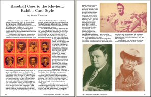 3) "Baseball Goes to the Movies...Exhibit Card Style" by Adam Warshaw. Collecting Exhibit arcade cards with both baseball and non-baseball themes is a speciality for Adam Warshaw. In this article he focuses on Exhibits that bridge the themes of baseball and Hollywood films and stars. The article is enhanced with full color (and full size) images of cards described in the narrative.