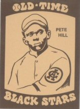 | Although there is believed to be only one copy in existence, the earliest card picturing Pete Hill is the 1909 Cabanas Cuban League card. The following season, another equally scarce card depicting Hill was produced by a company called Punch in conjunction with another Winter League issue. Subsequently, Hill would not appear on another baseball card until 1974 when he was included in the Laughlin Old Time Black Stars set. In addition, one other commemorative card picturing Hill exists and was included within the 2005 Helmar baseball card set. Finally, a BB HOF Postcard depicting Hill was produced during 2006. |