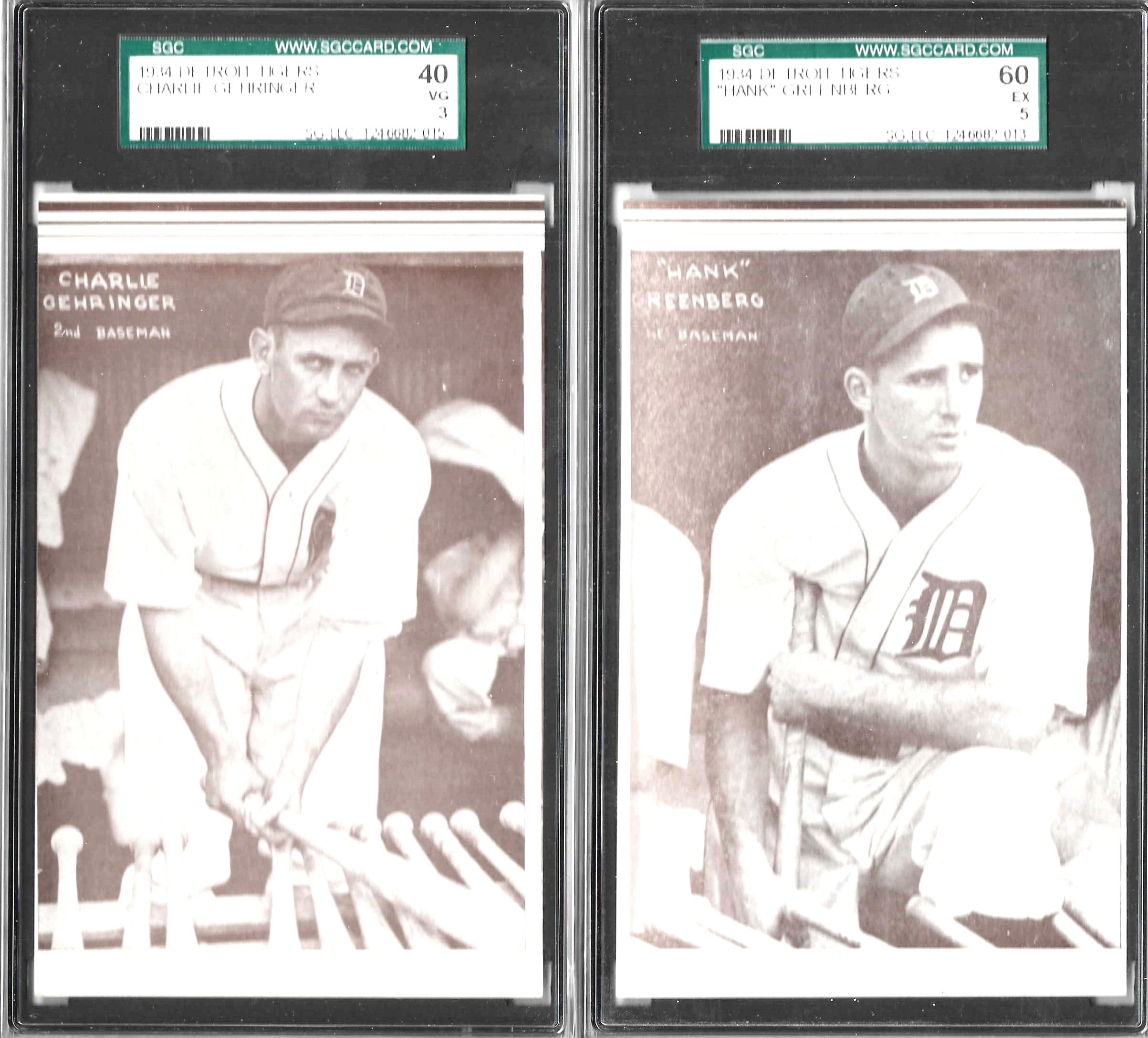 $590 Not listed in the American Card Catalog, this Detroit Tigers-only issue sponsored by Annis Furs depicts players from the 1934 Detroit team. Cards for a total of 23 players are known for the set. The offered card is that of Hall of Famer Mickey Cochrane, who was team manager at the time. The card is graded as SGC3 (Very Good) with very sharp corners. It is in like-new condition with no detectable wear on front or back. Further details about the Annis Furs Set are provided on the Old Cardboard website. | |||||||||||||||||||