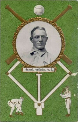 Properly labeled, the Rose postcard places Hartsel with the Philadelphia Athletics.