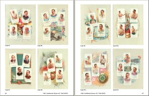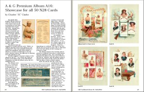2) "A & G Premium Album A16: Showcase for all 50 N28 Cards" by Charles "JC" Clarke. This beautifully lithographed album contains card images of all 50 cards (including 10 baseball players) from the 1888 N28 set. The album was originally produced as a premium redeemable for coupons issued in Allen & Ginter cigarette brands. Includes an example coupon and a colorful display of all 14 leaves from the album.