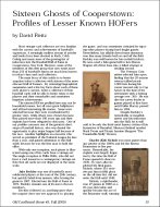 Articles published in this issue are written by some of the hobby's most informed experts and about some of it's most interesting vintage sets. They include: 1) "Sixteen Ghosts of Cooperstown: Profiles of Lesser-Known HOFers" by David Fleitz. SABR researcher Fleitz has provided Old Cardboard with an exclusive digest of his recent book "Ghosts in the Gallery at Cooperstown" (McFarland & Company, Inc., Jefferson, NC, 2005). The article (as well as the cover for this issue) is illustrated with a variety of vintage cards of these HOFers extending back into the 19th century.