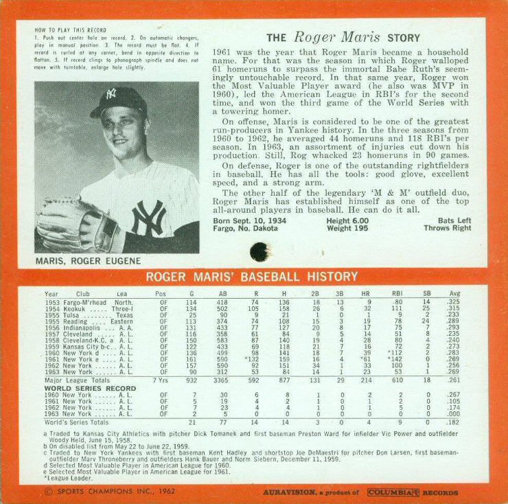 1964   Columbia Records Baseball Series