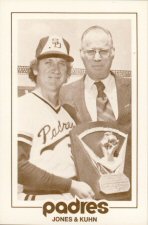 | Although it is extremely difficult to find, the true Rookie Card of Bowie Kuhn was produced in 1969 by Topps in a very limited quantity, estimated to be around 200, and distributed to Kuhn himself to give to his family and friends. The only other career contemporary card depicting Kuhn was included within the 1977 San Diego Padres Schedule set. |