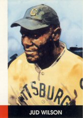 | The only career contemporary card picturing Jud Wilson is a possibly unique Real Photo Postcard from the 1931 time frame. Subsequently, a commemorative card of Wilson was included within the 1974 Laughlin Old Time Black Stars series. During 1990, another card picturing Wilson was produced by Eclipse in conjunction with their Negro League Stars set. A few years later, a card depicting Wilson was issued as part of the 1991 Pomegranate Postcards set. Finally, another modern card of Wilson was included within the 1994 Ted Williams Negro Leaguers series. |